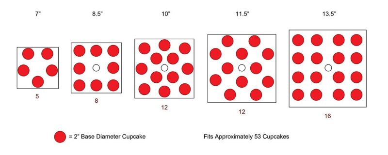 Total height= 19″ hight between each tier 4″ bottom tray 13 x 13 top tired 7 x 7 capable of holding 53 cup cakes see diagram attached